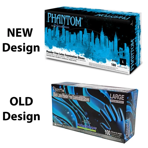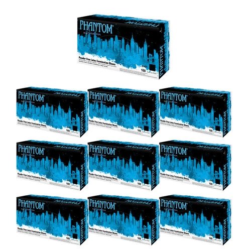 Adenna PHM916 Phantom Latex Powder Free Exam Gloves, Large, Black, Box of 100- Case of 10