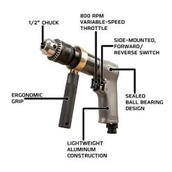 Astro Pneumatic 527C 1/2″ Extra Heavy Duty Reversible Air Drill – 500rpm