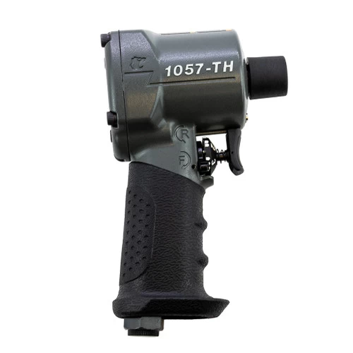 The AIRCAT 1057-TH 1/2-Inch Stubby Impact Wrench is one of the most compact air impact wrenches in its torque class, with an overall length of only 3.85 inches and width of 3 inches. The jumbo hammer provides high torque and increases the life of the impact mechanism. Its aluminum alloy housing can withstand the toughest conditions. The patented-design grip provides operating comfort, and a trigger-mounted forward/reverse switch and power management provides convenient, one-handed operation.