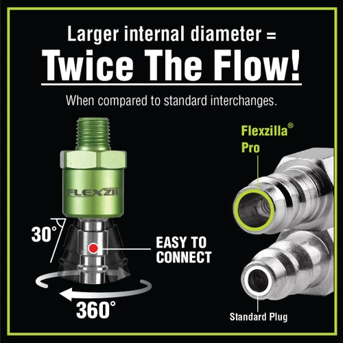 Flexzilla Pro High Flow couplers and plugs allow Twice the Flow to your air tools.