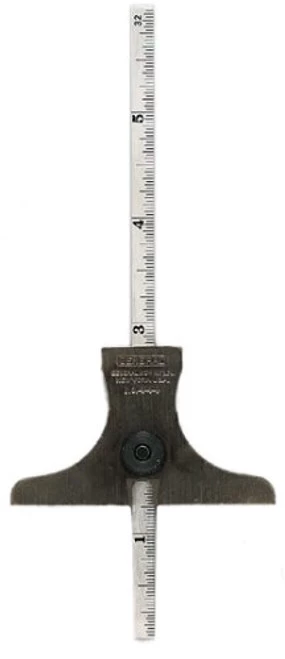 - This gage features a 6 inch by 1/4 inch etched stainless steel rule graduated in 32nds and 64ths with a 2-1/2 inch wide hardened steel base