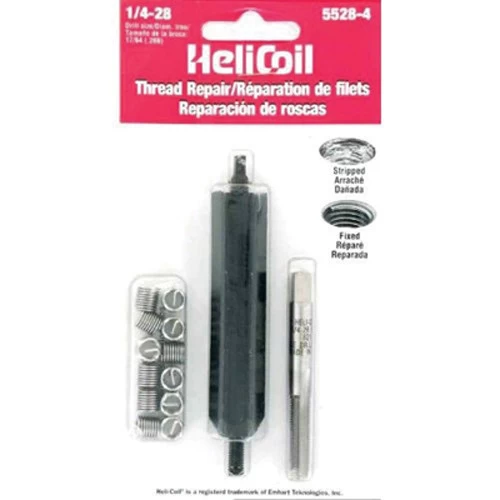 Helicoil Inch Fine Thread Repair Kit includes inserts, detailed instructions, Heli-Coil tap and installation tool. It is made from high quality material and is extremely long lasting. This inch fine thread repair kit is used for repairing tapped holes which have been stripped or damaged, due to wear, corrosion and over torque. It comes with a package type of durable placon or vinyl pouches.