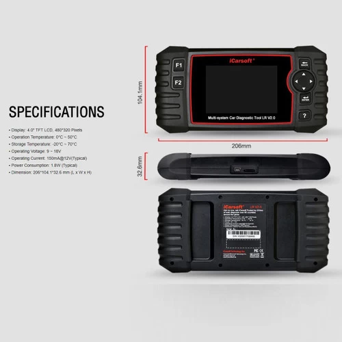 iCarsoft LR V2.0 is a powerful vehicle fault diagnosis tool. With a 4 inch TFT LCD screen and unique diagnostic software, this powerful tool features full ECU diagnosis for CANBUS, ISO9141, KWP2000, and more. This tool will enable technicians and DIYers to accurately diagnose complex problems with their Rover.