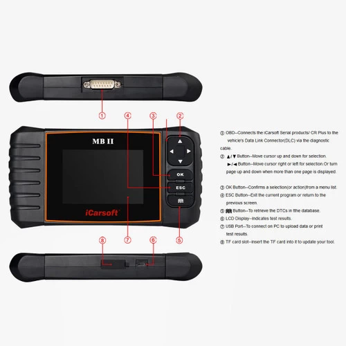 MB II is a professional and powerful vehicle fault diagnosis tool developed by iCarsoft Technology Inc. With a 4” TFT LCD and unique diagnostic software,it features full ECU diagnosis of single vehicle brand and test modes mainly include: CANBUS, ISO9141, KWP2000, J1850 etc.