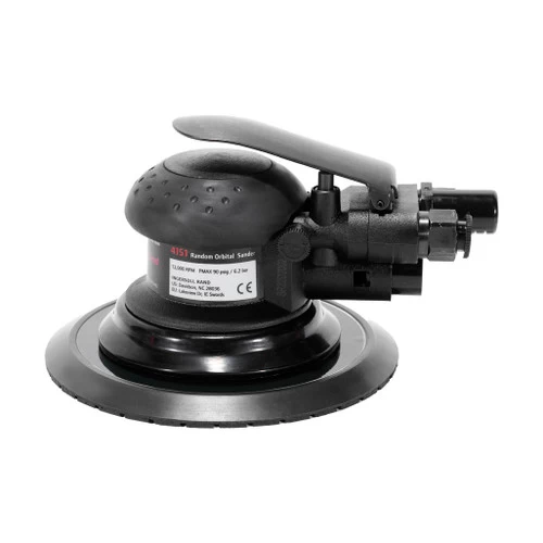 This palm-style random orbital sander is used on wood, fiberglass, sheet metal, and aluminum surfaces. It uses a six-inch sanding pad and features a 3/16” orbital diameter. Users appreciate this sander’s ergonomic palm-shaped design that delivers operator comfort and reduced vibration. It is suitable for vertical and horizontal applications. Shop JB Tools and get the best price on this Ingersoll Rand 4151 orbital sander.