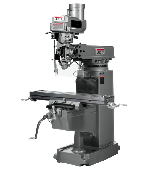 The JET JTM-1050 features Meehanite castings, a heavy-duty hardened and ground 10 Inch x 50 Inch table, and high precision class 7 precision bearings support the spindle. Precision bored and honed milling heads ensure quality cuts, and the three-stage power downfeed with automatic stop makes the JET Variable Speed Milling Machines easy to use. JET precision engineering ensures superior results with all the features you have come to expect, all backed by the industry-leading JET Two Year Warranty