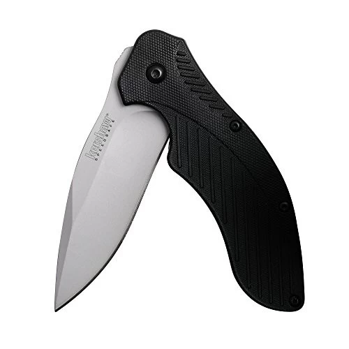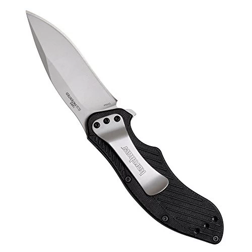 Kershaw 1605 Clash Assisted Flipper Knife 3″ Bead Blast Plain Blade, Black Polyimide Handles