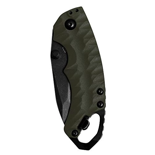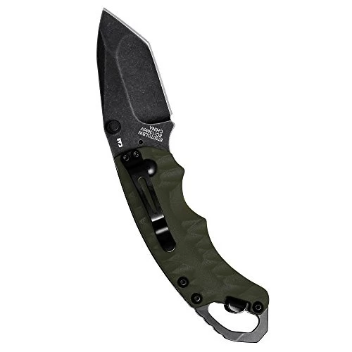 The Shuffle II goes bigger and brawnier. It offers a bigger blade and a longer handle, yet it has the same multifunctional flexibility and value pricing that made the Kershaw Shuffle so popular. But the Shuffle II’s look is very different from the Shuffle. With a tanto blade, strongly textured handle, and BlackWash blade finish, the Shuffle II has a very substantial look and feel. It’s sturdy glass-filled nylon handle in attractive olive green, the Shuffle II is ready to handle any task indoors, at work, or in the out of doors.