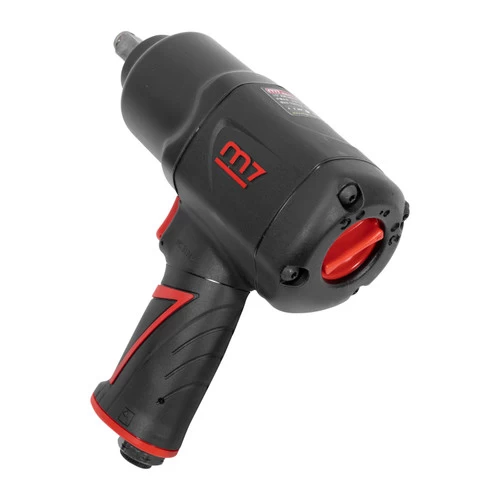 The M7 NC-4233QH pneumatic impact wrench is perfect for automotive repair. This tool’s heavy-duty design handles high-volume, high-torque applications. It features a forward torque range of 200-500 ft-lb. And its maximum reverse torque of up to 850 ft-lb busts those tough, rusted nuts. Do you need a strong tool that removes stubborn nuts and bolts? Shop JB Tools and get the best price on this M7 NC-4233QH 1/2″ air impact wrench.