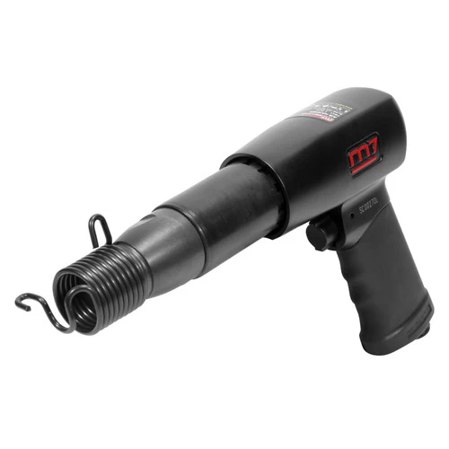 The M7 SC-212C air hammer has an extended barrel that makes it suited for heavy-duty demolition work. Use it to carve, drill, and chip stone, metal, and other hard materials. The air tool features a 0.40” round shank that fits the five chisels that come with it. You get a flat chisel, cutting chisel, tapered punch, ripping chisel, and tailpipe cutter. Secure these to the hammer with a spring retainer, also included with the SC-212C.