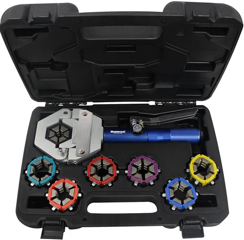 Mastercool patented Hydra-Krimp makes crimping barbed and beaded fittings easy. Lightweight and portable hydraulic press is ideal for shop and field applications.