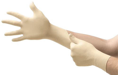 The Microflex High Five disposable glove is made of latex, is packaged 100 per pack, 1000 per case, comes in tan and meets FDA standards. Proper sizing is important when buying this SKU. The size for this product is Large.