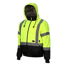 Pioneer High Visibility Safety Bomber Jacket for Rain – Hi Vis, Waterproof, Reflective, ANSI Class 3, Work Coat with Detachable Hood, Men, Yellow/Black