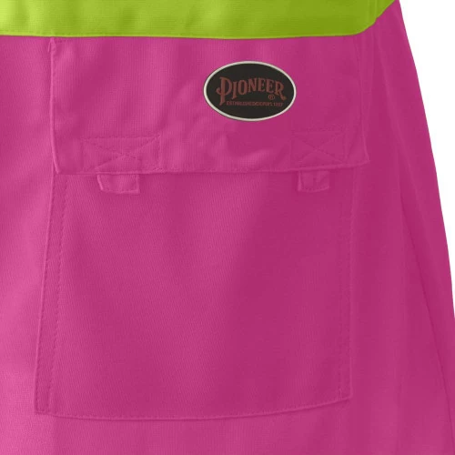 Women’s custom fit hi-vis safety vest is specially designed for ladies. It has a tapered waist and flared bottom for comfort and flexibility. Meets visibility standards and requirements for low to medium risk workers, including school crossing guards, airport baggage handlers, and more. Made of breathable tricot polyester with a front zipper closure. Can also be used for bike riding, running, volunteering, and more. Has 9 total pockets, including an ID pocket with pen holders, and several other compartments for keeping your mobile phone and other valuables secure. This style safety vest is available in fluorescent pink, orange and yellow/green and come in sizes XS – 2XL. They all have StarTech reflective tape, providing excellent visibility. Since 1887, Pioneer has grown a reputation for designing and building the highest-quality and most innovative protective and safety apparel. Using only the best and safest materials, componentry, and advanced sewing methods, Pioneer continues to deliver on safety, durability, comfort and value for the professional worker. Pioneer offers a complete selection of safety clothing including Hi-Vis gear, flame resistant wear, rainwear and much more. All our products are independently tested to meet and exceed all stated safety standards.