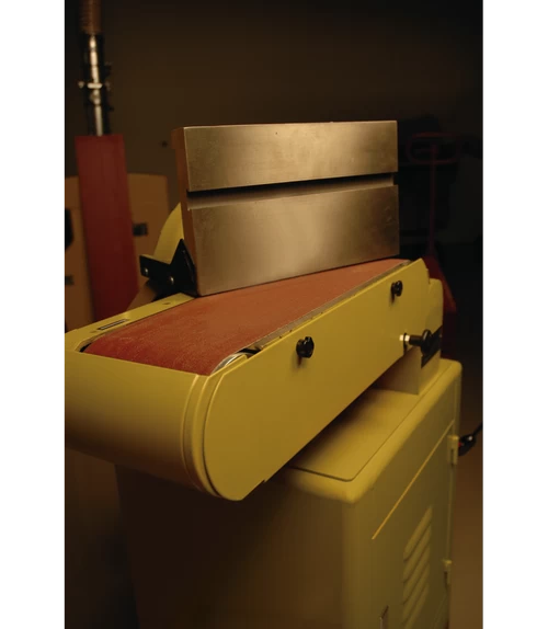 - Full cast iron platen with solid crowned aluminum drums for smooth sanding belt movement and support