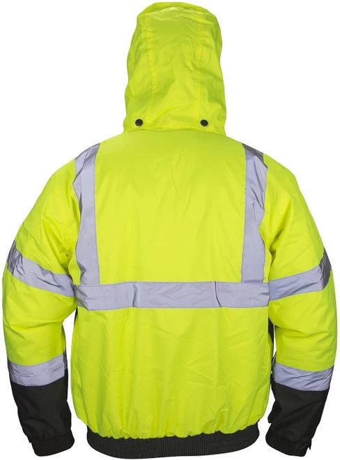 SAS Safety 690-1512 Hi-Viz Class-3 Hooded Bomber Jacket, 3X-Large, Yellow