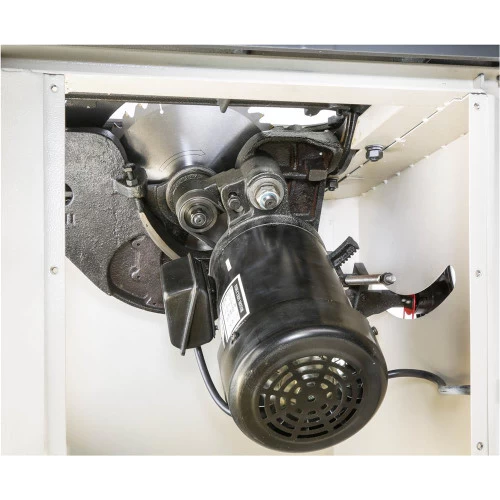 - Includes a 10″ x 40-tooth carbide-tipped blade, standard and dado table inserts, t-slot miter gauge, push stick, and arbor wrenches