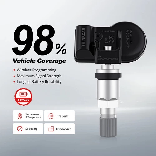 The Thinkcar THINKTPMS S1 433/315 MHz 2 in1 tire sensor covers more than 98% of vehicles, which is very cost-effective. Auto shops only need to stock 1 SKU to meet the needs of vehicle TPMS sensors, saving time and money, and improving the output ratio. The extraordinary sensor signal strength allows S1-Sensor to be easily programmed wirelessly even when the pressure sensors have already been mounted to the wheel. In addition, the unique spiral release valve design makes it easier to replace the manual sensor, and the installation can be completed in as little as 5 minutes.